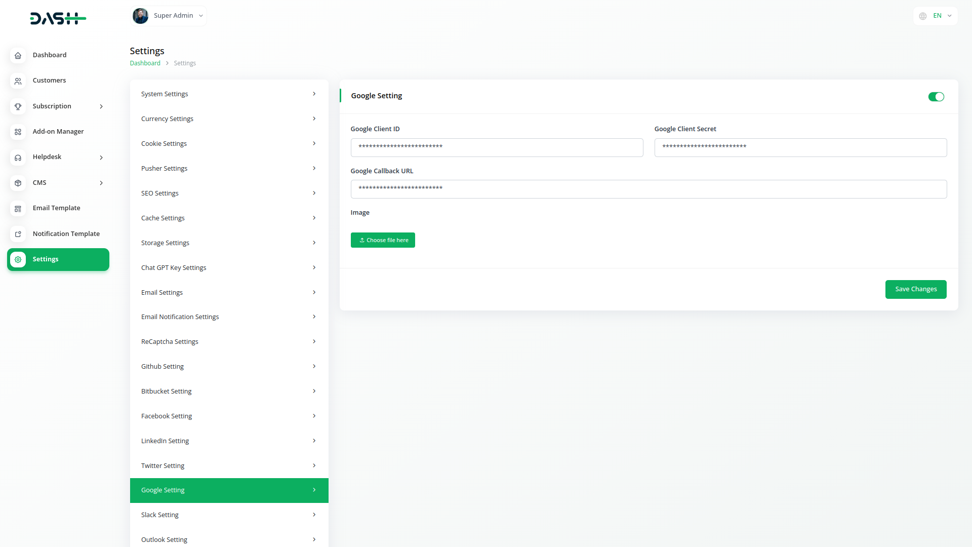 Effortlessly log in with your Google account using Dash SaaS`s Sign-In with Google module.