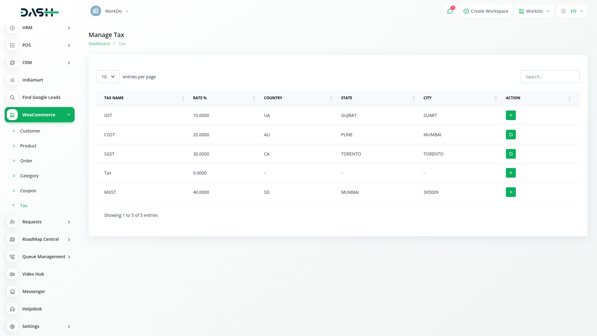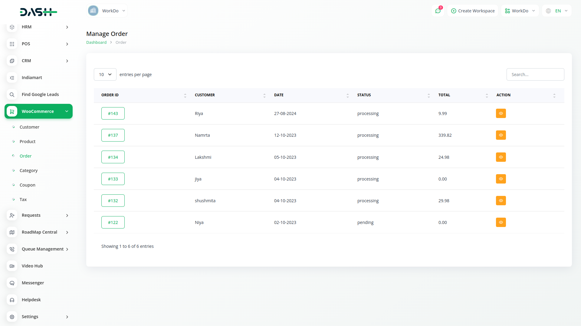 Integrate and manage your store`s products and inventory with WooCommerce using WooCommerce. Simplify product and coupon management while enhancing customer interactions for an optimized WooCommerce experience.You can also add your woocommerce products to dash saas by clicking on the button given beside the product.